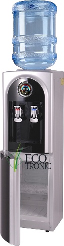 Кулер для воды Ecotronic H1-LCE, напольный с электронным охлаждением. Удобный для хранения продуктов и посуды 16 литровый шкафчик.